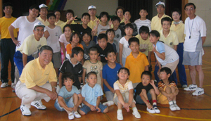 小学生チーム・エース格の内藤大揮君のダイナミックな走力とシュートには、見学している社体振の役員さんも「すごいなぁ〜」の感嘆の声しきり。 続いて、「低学年同士」「高学年対大人」とゲームを行います。 いずれも初体験ですから、スティックのあつかいも自由にならず、空振りしたり、全員がボールの回りに集まってしまい、ゴール前には誰もいなかったりの珍プレー続出。 でも初めは誰もが経験することです。全員、時間内目いっぱい動き回って“素質有り”の児童を数多く見受けました。 終了して何人かの初体験児童に感想を聞きました。 「面白かった。今度いつやるの ?」 どうやらM@WSの宣伝が行き届いていないようです。 「難しいんだもん。ボールが全然当たらないからつまらない」 当たり始めれば面白くなるんです。 「土曜日以外、練習あれば参加するよ」 他のスポーツやっているお友達のようです。 初の「体験講習」で、十分ユニホッケーの面白さを今日だけで理解してもらうのは無理かも知れませんが、地道に内容を検討しながら回数を重ねていけば、必ず参加者の増加が期待できる機会となりました。(渡邉) |