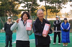 4面、各4チームに分かれたミックスダブルスマッチが始まりました。総当り3試合づつの「予選リーグ」で、習志野イースタンクラブの山川さんとペアを組んだ豆川さん、3試合全勝で「決勝トーナメント」に勝ち進み、準決勝も勝利し決勝戦に進出しました。相手のペアでとりわけ女性は「プロか?」と思うほどのプレーヤー、善戦健闘しましたが「準優勝」の結果となりました。 窪田、渡邉はそれぞれ頑張りましたが残念ながら予選リーグで敗退、優勝したペアと当たり“引き分け”に終わり“ゲーム差”で「決勝トーナメント」進出の道を断たれた渡邉は“残念無念”と悔しがることしきり。